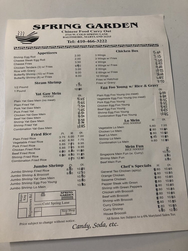 Spring Garden Carry Out Menu